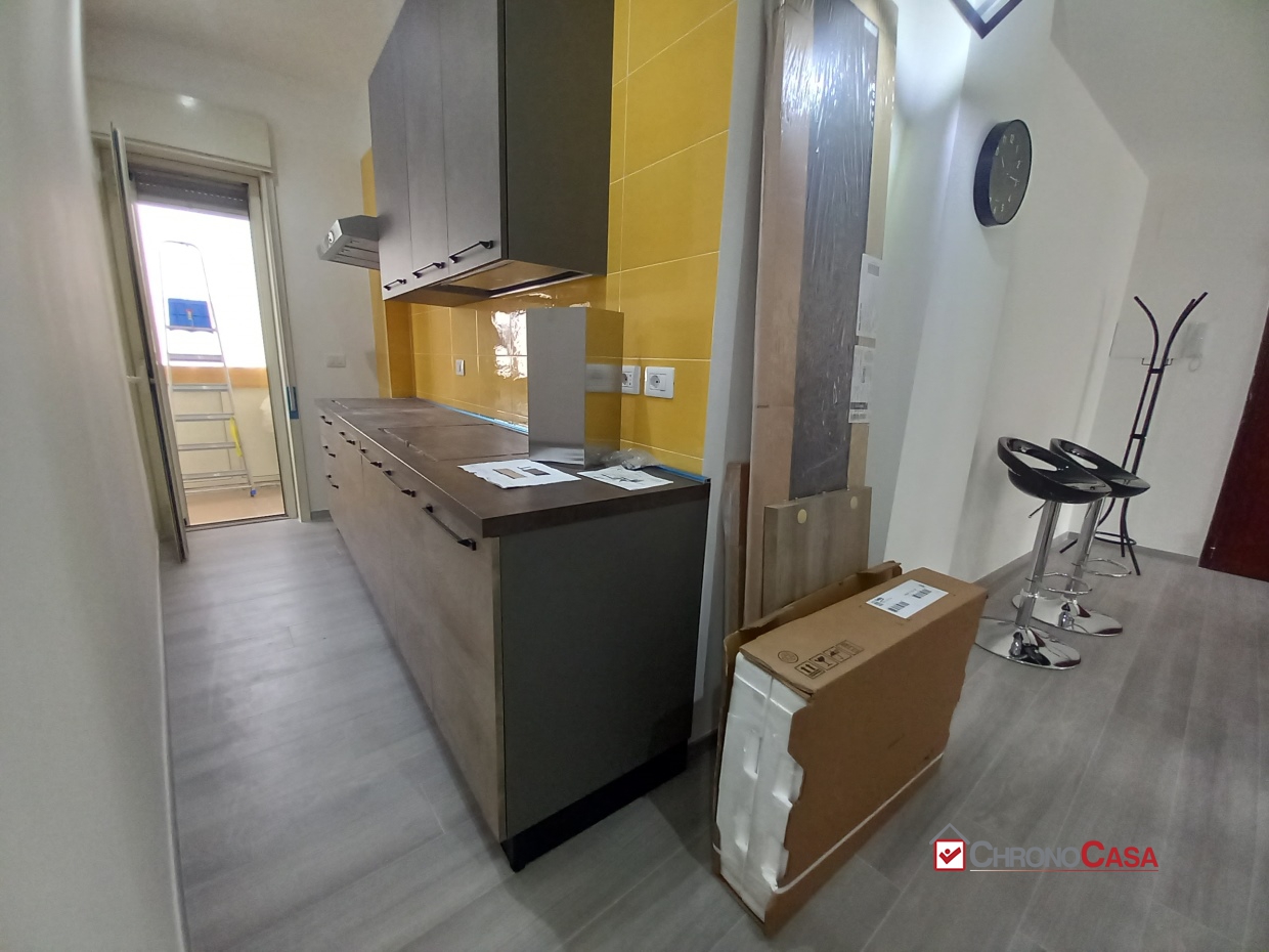L'immobile totalmente ristrutturato e dotato di tutti i conforts è composto da: ingresso su ampio salone con affaccio su un ampio balcone, angolo cottura con affaccio su balcone con chiusura alluminio dove è stato ricavato un angolo lavanderia, camera da letto con cabina armadio e bagno.