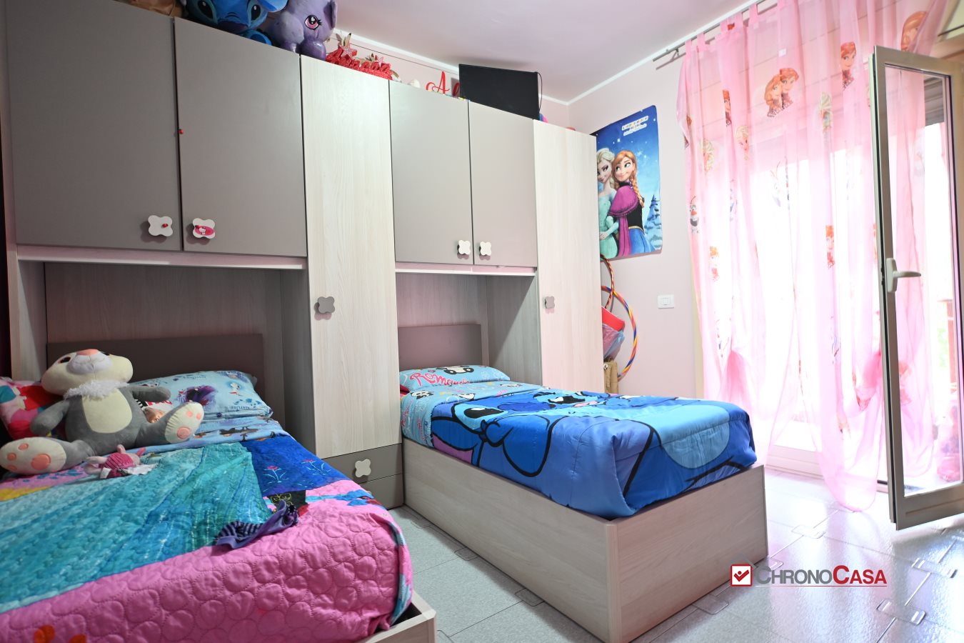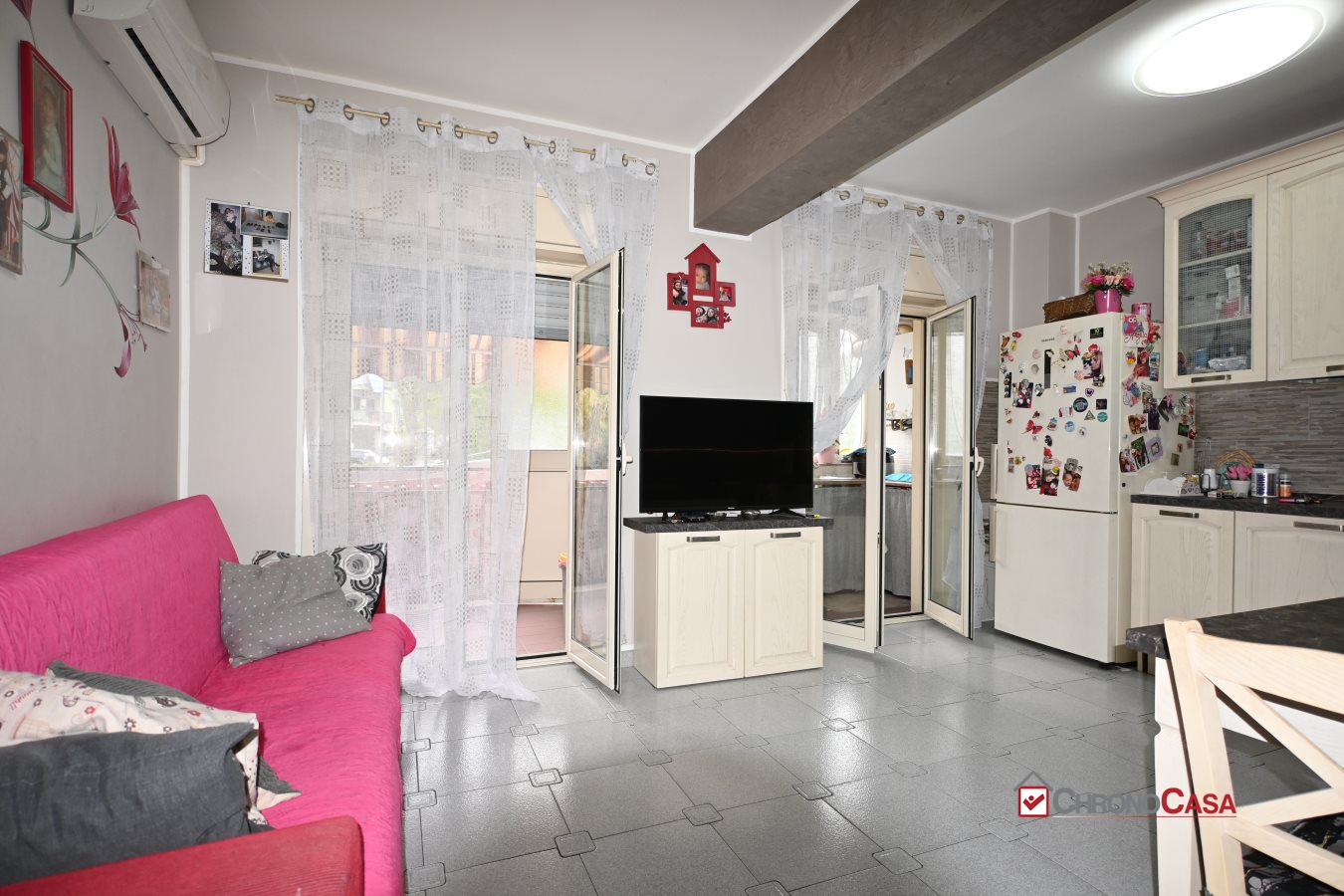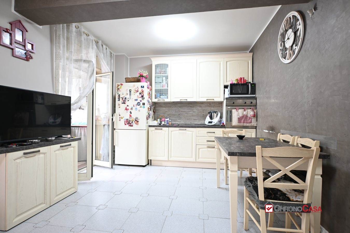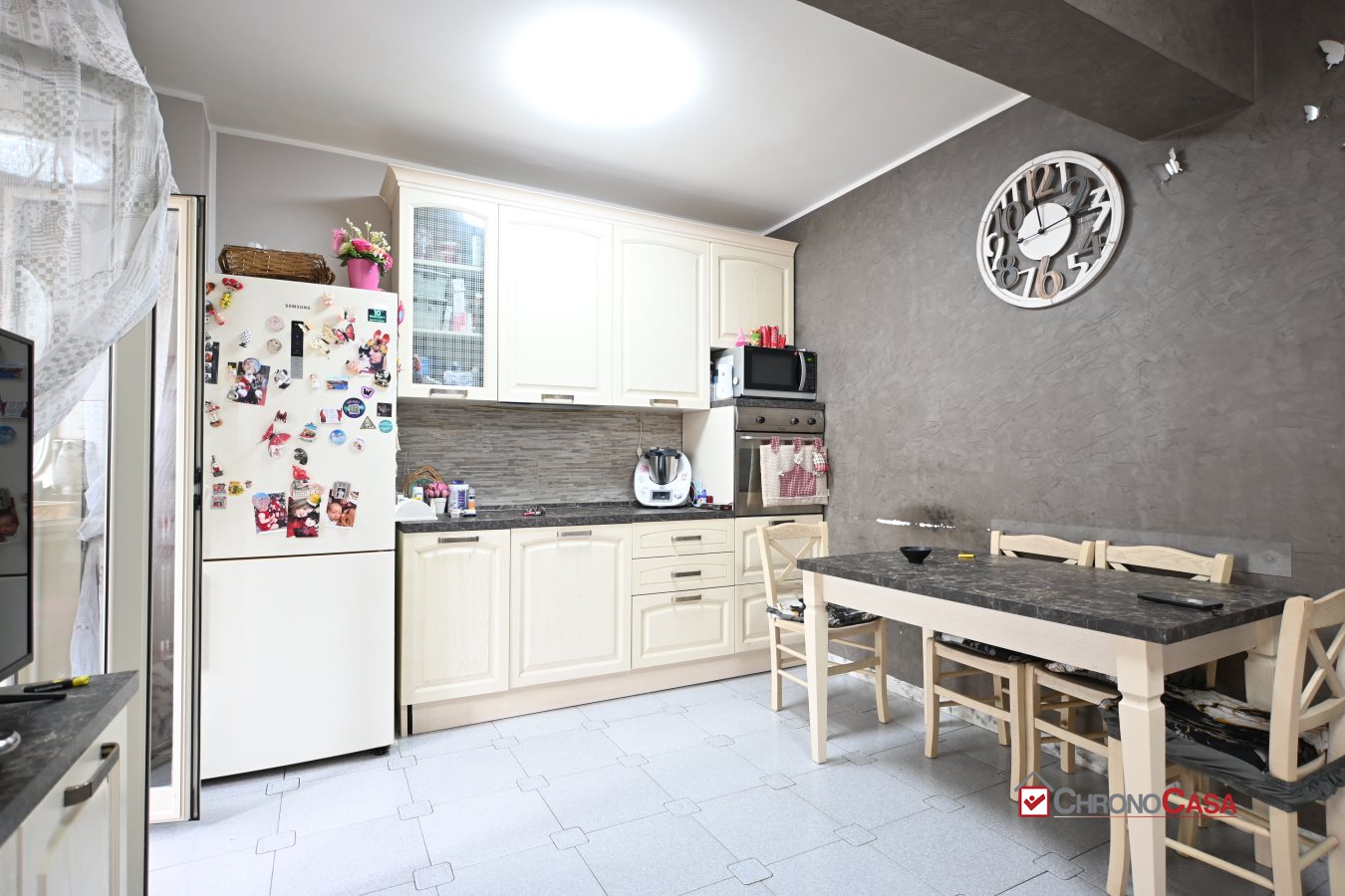 Agenzia immobiliare Chronocasa, filiale della zona sud, propone in vendita luminoso quadrilocale ristrutturato con doppi servizi e posto auto assegnato a San Giovannello. L'immobile ha una metratura di 128 mq ed è situato al quarto piano con ascensore del Complesso La Mimosa ed è composto da: ampio salone con affaccio su balcone verandato, cucina abitabile con accesso al balcone, una camera da letto principale, due camere da letto per ragazzi, due bagni senza finestra e ripostiglio.